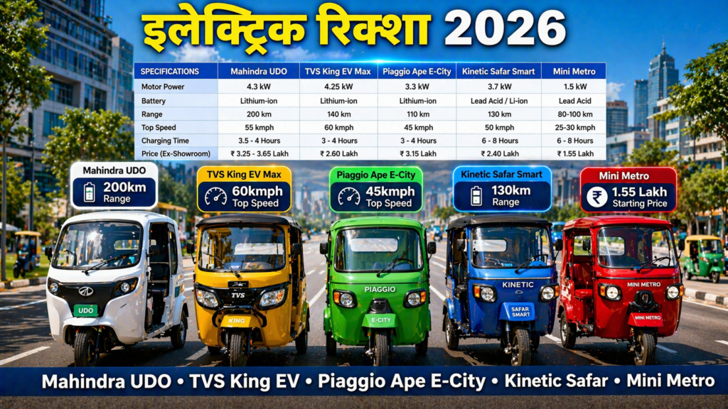 1. Introduction – इलेक्ट्रिक रिक्शा बाजार 2026, टॉप मॉडल्स की पूरी डिटेल दोस्तों, भारत में इलेक्ट्रिक थ्री-व्हीलर उद्योग 2026 में